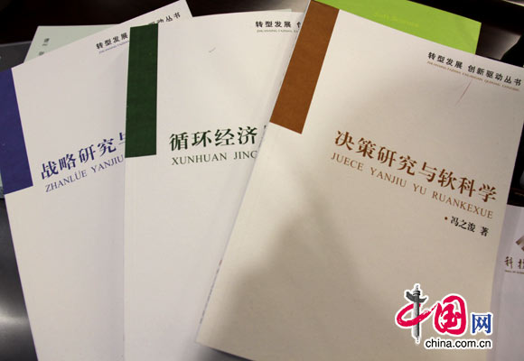 据了解,由冯之浚教授领衔主编的《转型发展创新驱动》丛书分为理论篇和实践篇两辑出版。第一辑图书已经于2013年12月由浙江教育出版社出版发行了三部著作:《循环经济与绿色发展》《决策研究与软科学》《战略研究与发展路径》。为了第二辑图书的出版,今天到会的专家、学者和有关决策人共同探讨、座谈了后续图书的定位和内容,并将计划陆续出版。