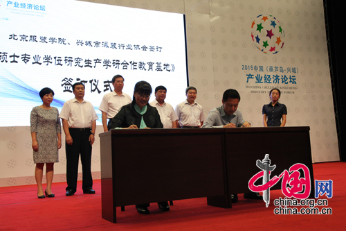 会议期间,在众多领导以及到场嘉宾的见证下北京服装学院、兴城市泳装行业协会签订了《硕士专业学位研究生产学研合作教育基地》协议。