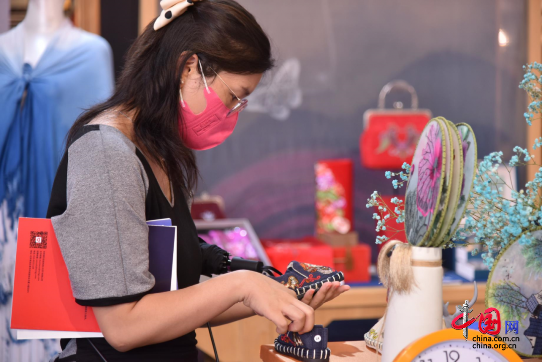 获得2020北京文化创意大赛直通车赛区三等奖的“深山集市”项目展位,吸引了许多观众驻足观看