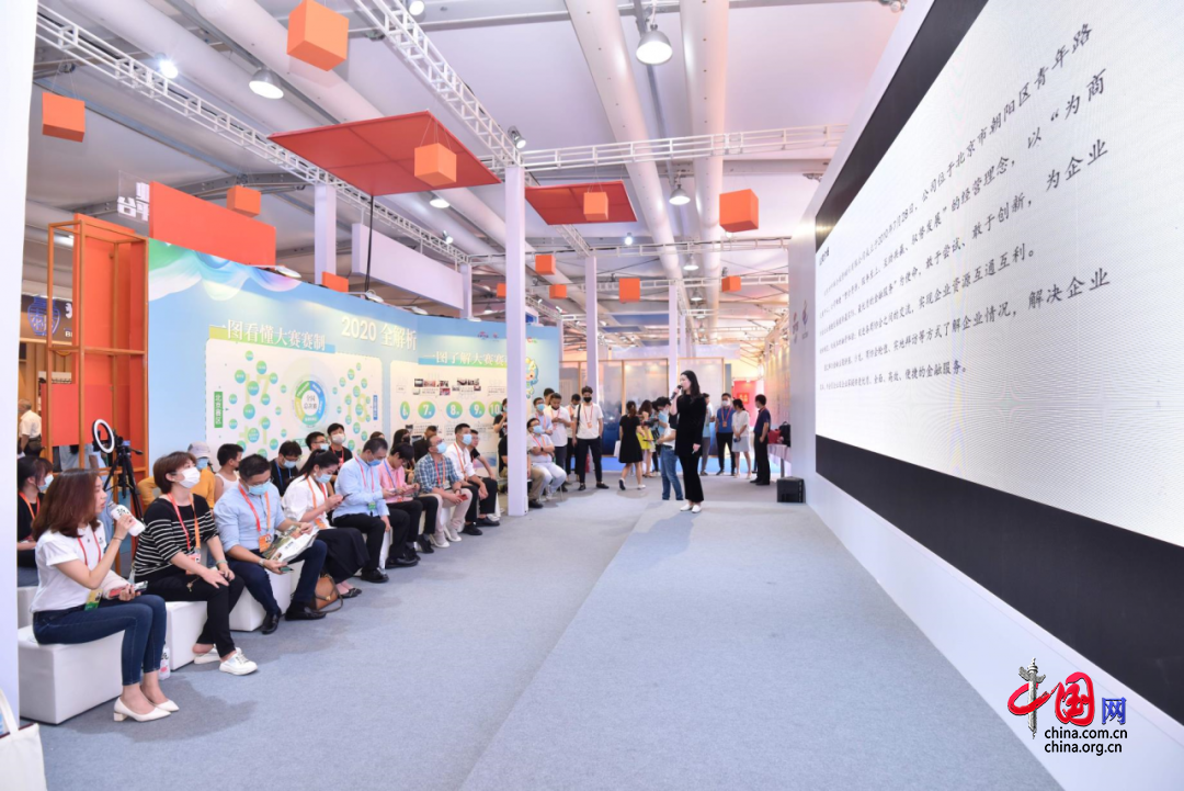 在展区周边的展板上,以大赛举办的整体脉络为线索,展示了数说大赛2016-2020、大赛成果榜、赛场风云榜、从“赛场”到“市场”等四部分内容,突出了大赛平台对初创企业的聚合与扶持作用。
