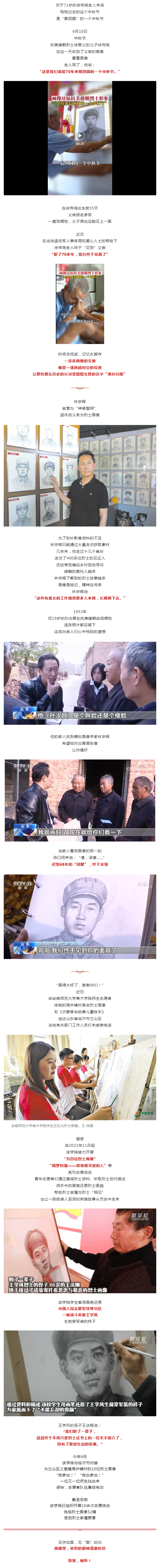 终于“团圆”!七旬老人收到抗美援朝烈士父亲的画像……