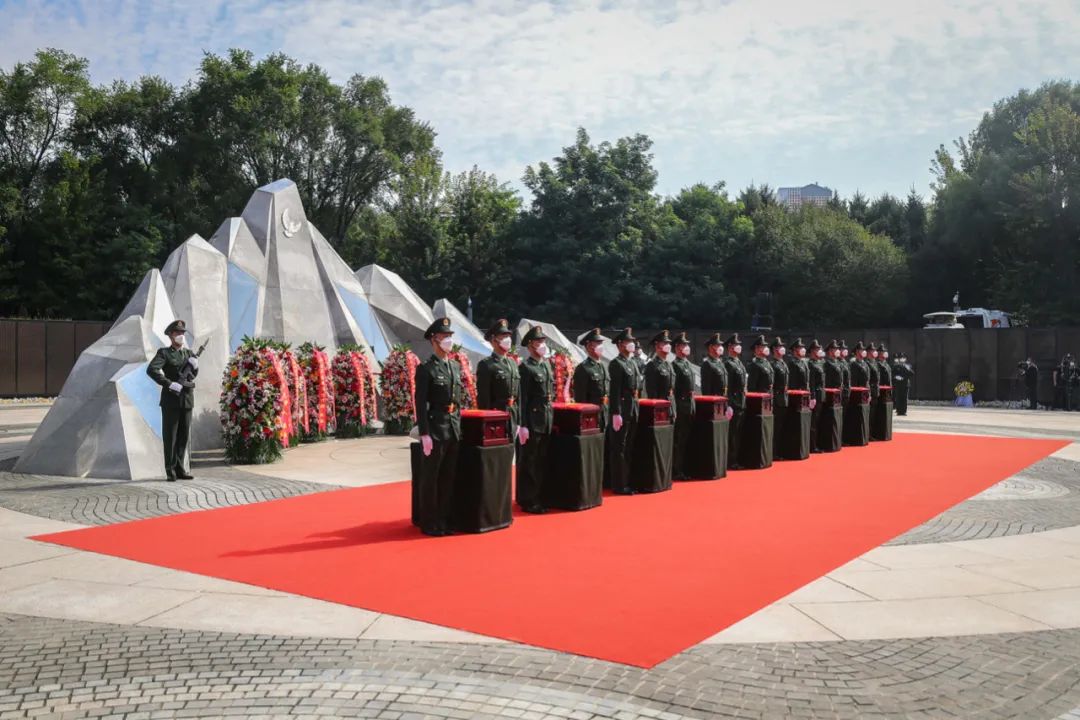 9月17日上午,第九批在韩志愿军烈士遗骸安葬仪式在沈阳抗美援朝烈士陵园举行。