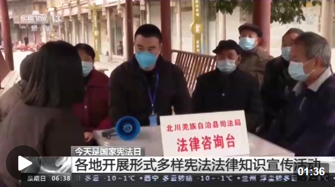 在绵阳市北川羌族自治县禹里镇,普法人员通过设立咨询台、为群众提供面对面的法律咨询服务,“以案释法”对群众关心的民间借贷、电信诈骗、购房合同纠纷等热点问题提供了专业法律解答。普法志愿者还深入乡村,为上万名群众送去普法宣传资料,涵盖《宪法》《禁毒法》《民法典》等10多部法律法规和法律援助指南。当地还在全县的公交车、出租车内布置起主题图片,设置宪法日知识二维码,乘客扫码就能观看讲解视频,线上学习宪法知识,还可以与法律工作者进行互动、咨询。