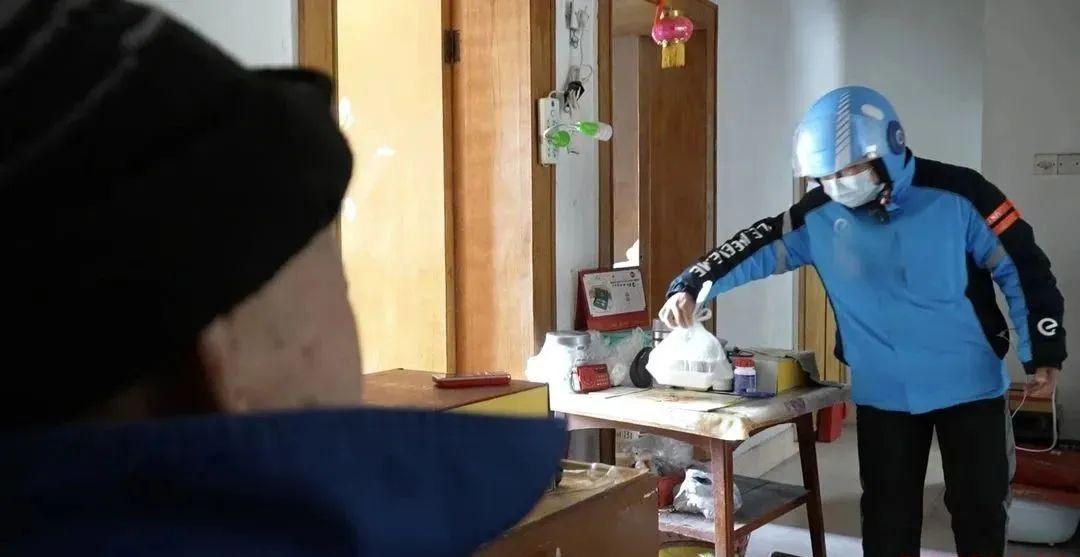 “爷爷,饭给你送过来了放在桌上,趁热赶紧吃”12月20日11时许湖南长沙外卖员袁可准时抵达位于长沙市天心区冬瓜山社区86岁的胡爷爷家中送上了一份热气腾腾的午餐“还有两个老人的饭没送今天就不进来坐啦”