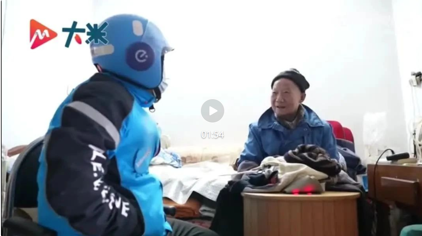这些独居老人平时缺少陪伴“我第一次给胡爷爷送餐时他坐在那里一动不动”回忆起3个月前刚开始送爱心午餐的场景袁可感触颇深往后,只要当天订单任务不重袁可也会坐下陪老人唠唠家常胡爷爷说“平时没人跟我讲话心里好烦躁、挺孤独袁可来了陪我讲话我心里舒畅多了”