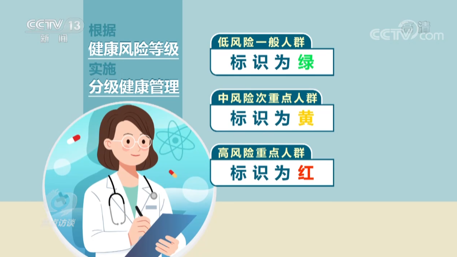 在医联体为载体的诊疗体系下,新冠病人又怎么去分类收治呢?《方案》提出,社区卫生服务中心、乡镇卫生院要对辖区内老年人合并基础病等特殊人员实施健康监测,提前摸清底数,根据健康风险等级实施分级健康管理,低风险一般人群标识为绿、中风险次重点人群标识为黄、高风险重点人群标识为红,对健康档案为黄色、红色的人员进行专案管理。