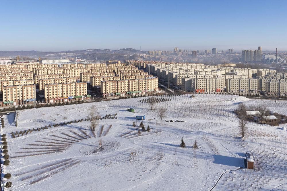 黑龙江省鹤岗市欣虹湖公园一角和部分棚户区改造安置房(2022年12月8日摄)。新华社记者 谢剑飞 摄