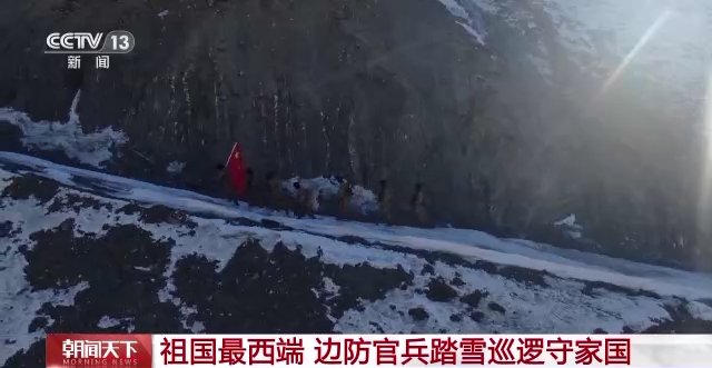 帕米尔高原,寒风凛冽,冰封雪裹,最低气温达到零下26℃。新疆军区奥尔托苏边防连8名巡逻官兵,前往29号界碑进行武装巡逻,确保边境安全稳定。
