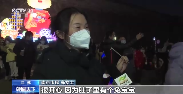 南京市民 高女士:很开心,因为肚子里有个兔宝宝,所在就特别来看亮的大兔子,对它情有独钟的感觉。