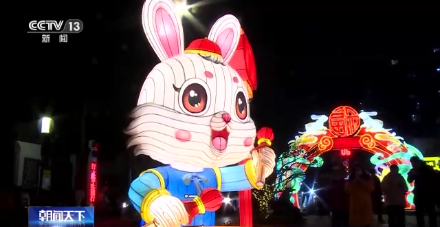 高达15米的生肖大福兔、国潮兔、卡通兔、科幻兔流光溢彩,“百兔贺春”氛围十足,带动周边文创消费。