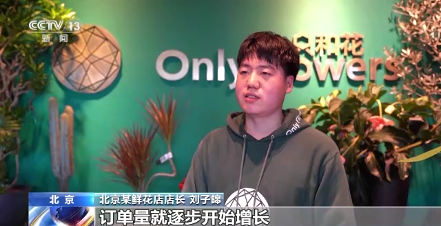 北京某鲜花店店长 刘子皞:从2022年12月31日下午,订单量就逐步开始增长,到元旦当天的上午陆陆续续发出了几十个花束。
