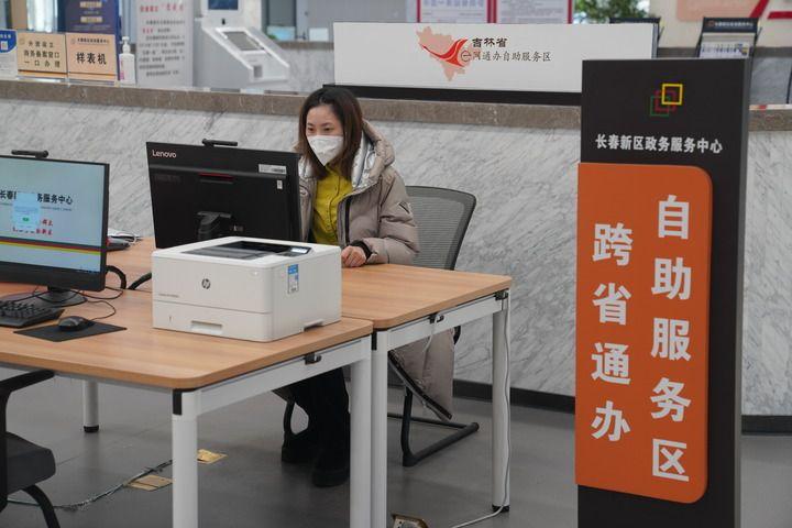 在长春新区政务服务中心,一名企业办事员在自助办理业务(2022年12月29日摄)。新华社记者 司晓帅 摄