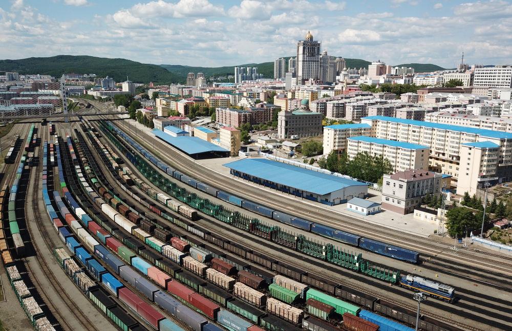 2022年6月8日拍摄的中国(黑龙江)自由贸易试验区绥芬河片区局部(无人机照片)。新华社记者 王建威 摄