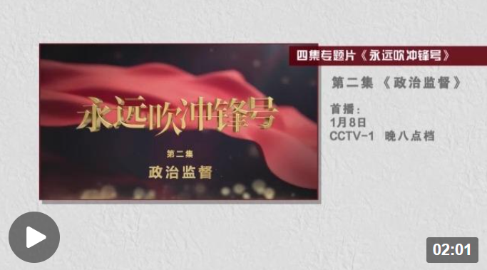 四集电视专题片《永远吹冲锋号》第二集《政治监督》,将于1月8日在中央电视台综合频道晚8点档播出。