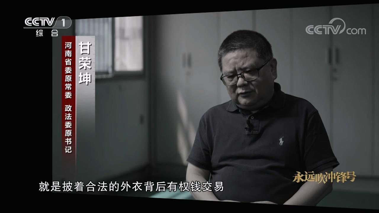 甘荣坤:到了西站,大概还有十来分钟(发车),我就(在)站台上去抽烟,烟掏出来还没点着呢,这时候专案组来了,来了他们说,中央决定对你采取留置措施审查调查。也是觉得确实没有后悔药,还是把金钱看得太重,所以走上了邪路,也是走上了人生的不归路。