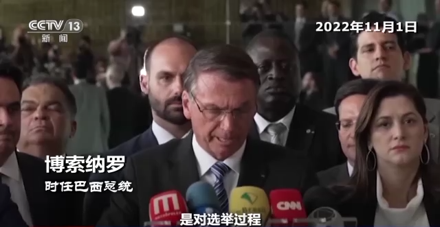 去年11月1日,败选44个小时后的博索纳罗首次露面并发表讲话时,曾对抗议大选结果甚至引发骚乱的示威人群称赞。