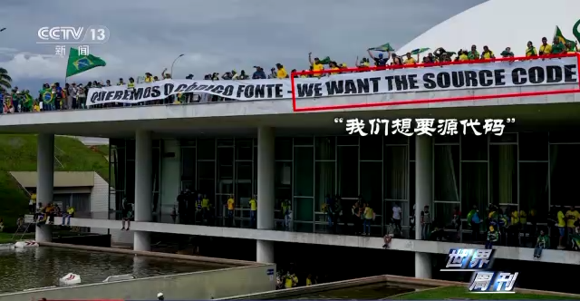骚乱当天,抗议者展示的横幅用英语和葡萄牙语写着“我们想要源代码”。原因是之前有谣言盛传,电子投票机以某种方式被编程或黑客入侵,从而使博索纳罗败选。