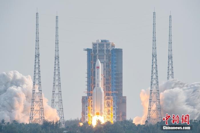 资料图:搭载空间站梦天实验舱的长征五号B遥四运载火箭点火发射。 中新社记者 侯宇 摄