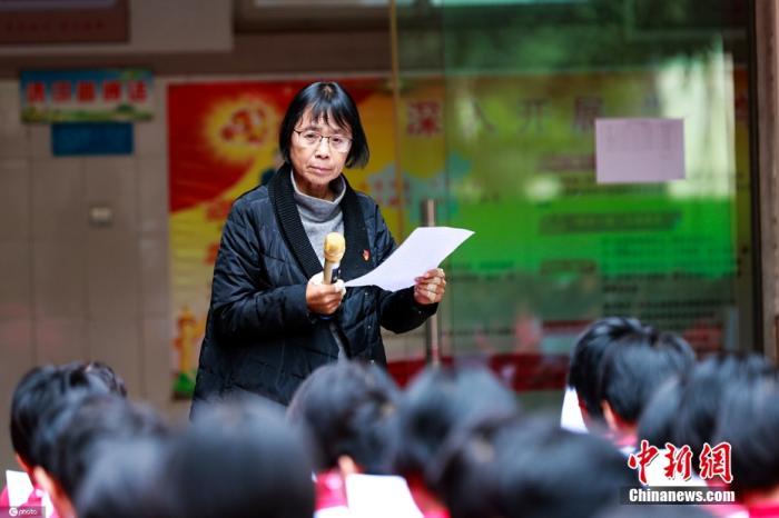 资料图:张桂梅在华坪县女子高级中学给同学们讲话。图片来源:ICphoto