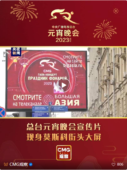自2月3日起,在位于莫斯科中央行政区的法捷耶夫街、祖博夫斯基广场、帕维列茨车站等街区,总台春晚吉祥物“兔圆圆”在70块街头大屏幕上欢腾悦动,向莫斯科居民展示总台2023年元宵晚会宣传片。