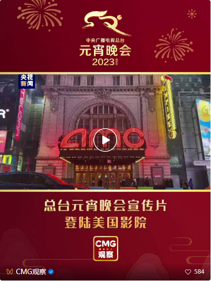本次活动触达上述各大城市共55家主流影院的772张电影银幕以及109张大厅电子屏,预计将在电影银幕播出总计6176次,大厅电子屏播出总计11216次。与此同时,总台制作的元宵晚会相关报道被148家北美及其他国家主流媒体转载或引用,触达海外受众720多万人次。