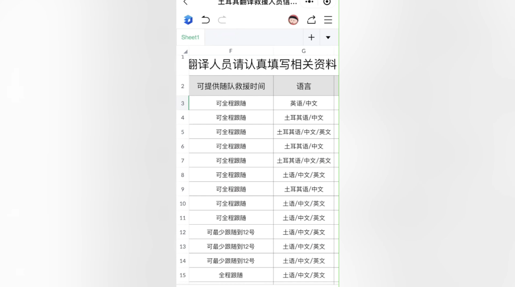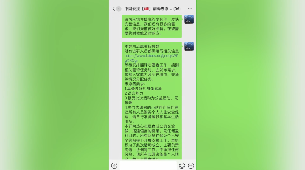 为帮助救援队解决沟通不畅的难题,来自贵州的“90后”女孩郭国英结合自己多年旅居国外的优势,2月7日开始在线上招募、组建了一支百余人的翻译志愿者团队,为中国救援队和土耳其当地搭起了一座沟通的桥梁。