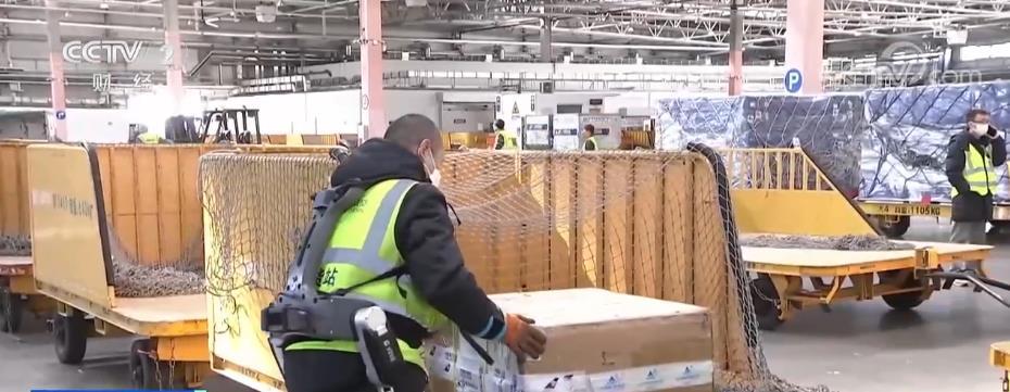 春节前后货站的来货量大增,货物品种多样,包装规格也不尽相同,很多都需要人工处理。在大兴机场的国内货运站里记者看到,负责搬运的工作人员身穿外骨骼机器人,将很大的货运箱轻松搬起。工作人员相春江告诉记者,他们货站前两年就引进了外骨骼机器人,但是之前货量小,使用频率并不高,真正用起来还是在最近。