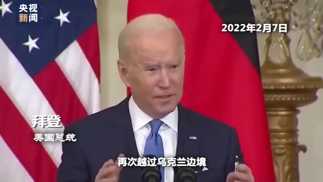 美国总统 拜登:“入侵”意味着坦克和部队再次越过乌克兰边境,那么“北溪”管道也将不复存在,我们将终结它的使命。