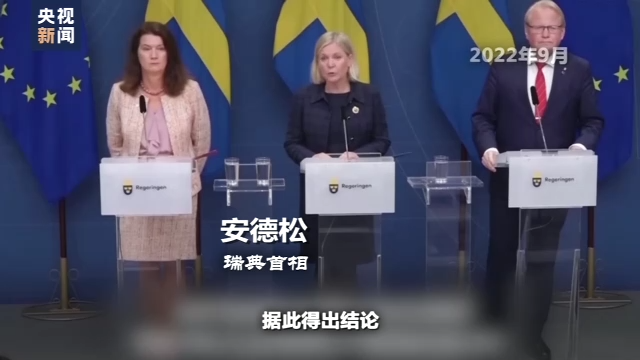 瑞典首相 安德松:我们有瑞典的情报,也从丹麦获得了信息。据此得出结论,这可能是一次人为蓄意行为,很可能是蓄意破坏。
