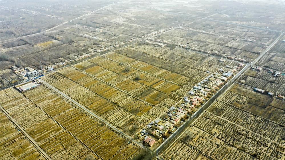 这是2月21日拍摄的新疆和田地区策勒县巴什玉吉买村(无人机照片)。新华社记者 丁磊 摄