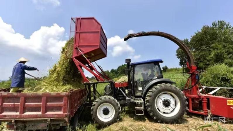 村民正在使用现代农机收割牧草(央广网发 吴贤和 摄)