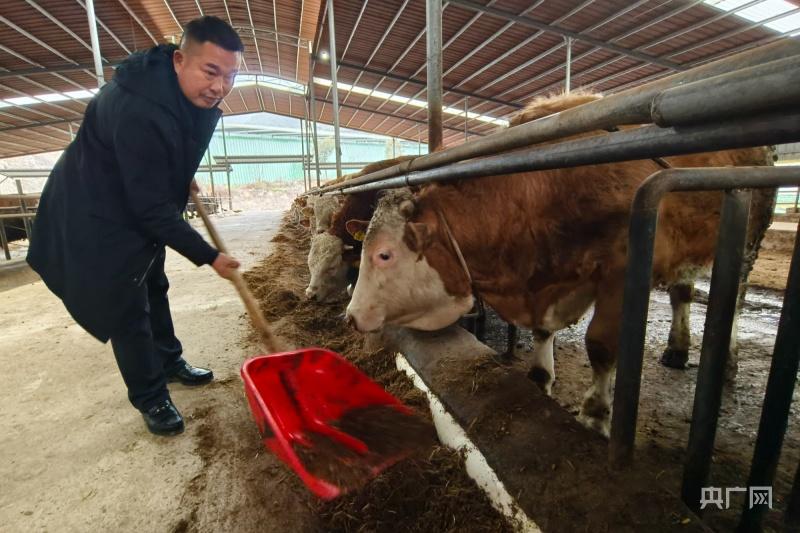 黔东武陵山区的绵绵春雨如约而至,山脚下是一排排宽敞整齐的标准化圈舍。圈舍内,一头头肉牛膘肥体壮。