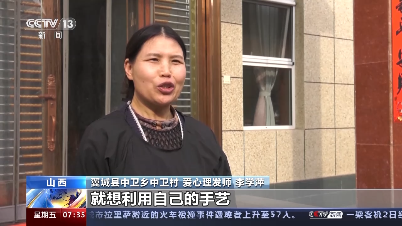 翼城县中卫乡中卫村 爱心理发师 李学萍:我作为一名理发师,就想利用自己的手艺为老年人提供一些服务。当我剪完头发看到他们变美的时候,我心里很高兴。