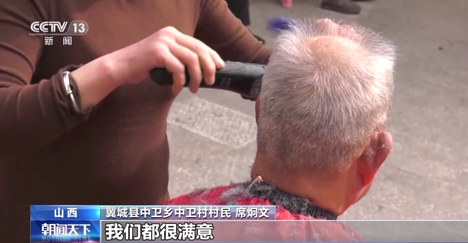 翼城县中卫乡中卫村村民 席炯文:理发师精心理发,造型很好,我们都很满意。