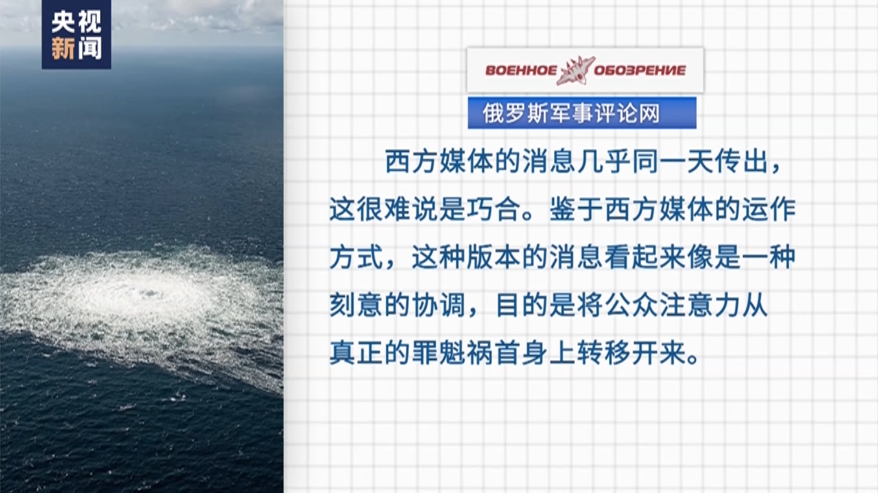 这真的是巧合吗?俄罗斯军事评论网8日刊文认为,西方媒体的消息几乎同一天传出,这很难说是巧合。鉴于西方媒体的运作方式,这种版本的消息看起来像是一种刻意的协调,目的是将公众注意力从真正的罪魁祸首身上转移开来。早些时候,西方媒体上炒作的是俄罗斯炸毁了“北溪”管道。赫什的报道发表后,华盛顿意识到继续指责俄罗斯破坏“北溪”是毫无意义甚至荒谬的,因此决定让受控制的媒体参与进来,从中放出“乌克兰的痕迹”,并“甩锅给乌克兰人,因为他们正在与俄罗斯交战”。