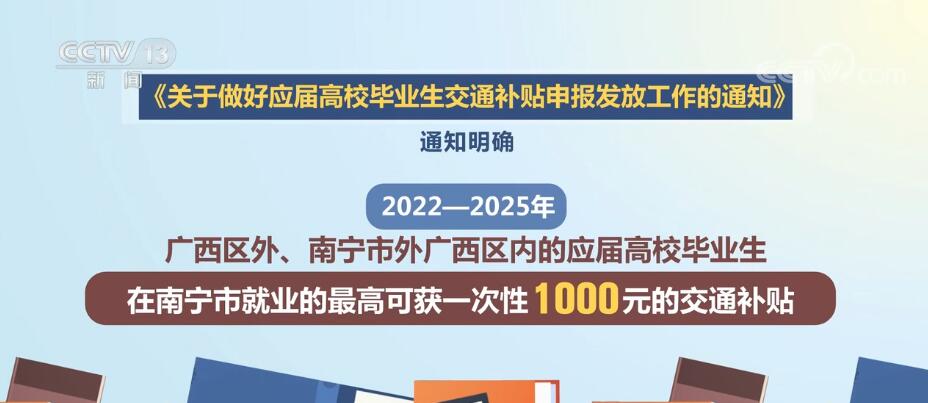 近期,南宁市人社局印发了《关于做好应届高校毕业生交通补贴申报发放工作的通知》,其中明确,2022—2025年,广西区外、南宁市外广西区内的应届高校毕业生,在南宁市就业的最高可获一次性1000元的交通补贴。