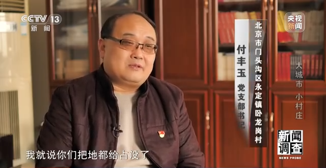 北京市门头沟区永定镇卧龙岗村党支部书记付丰玉:村里没什么发展,说实话,从2004年就确权确地,整体流转,然后年底村里根据收益给你分红。2015年我们就没剩什么地了,所以老百姓也找我,我们也找(区里),我就说你们把地都给占没了,我们村子怎么办?