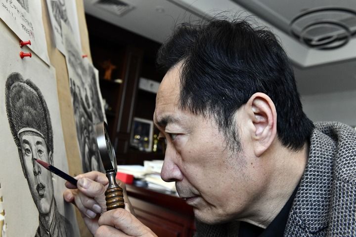 3月28日,在位于济南的模拟画像专家林宇辉工作室,林宇辉为烈士画像。新华社记者 郭绪雷 摄