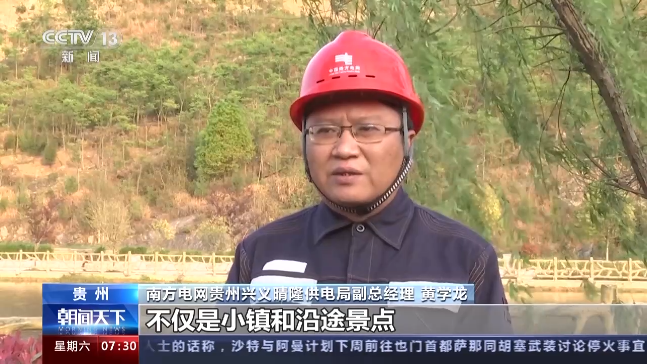 南方电网贵州兴义晴隆供电局副总经理 黄学龙:不仅是小镇和沿途景点实现了汽车充电站和充电桩的全覆盖,我们还服务全县电动共享单车、电动划艇和新能源公交车,在发展旅游的同时保护好当地的环境。