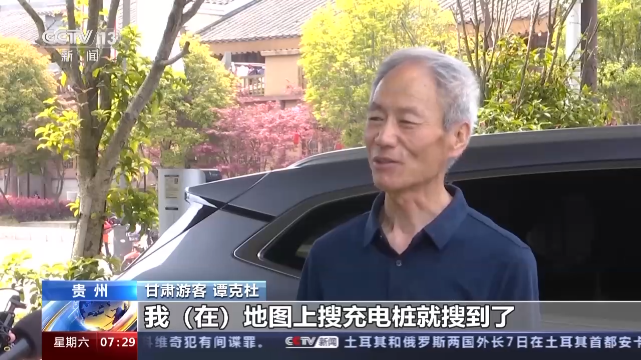 甘肃游客 谭克杜:我在地图上搜充电桩就搜到了,搜到了两三个充电站,充电桩很多,很方便,充电也快。