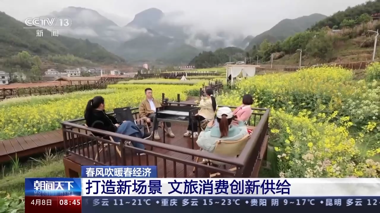 吸引游客来,更让他们留下来,各地因地制宜打造文旅消费新场景。这段时间,江西萍乡武功山景区的油菜花正在盛放,梯田上翻滚着的千亩金色花海,吸引了全国各地游客。今年,当地在花海中间辟出露营基地,带给游客沉浸式的赏花体验。