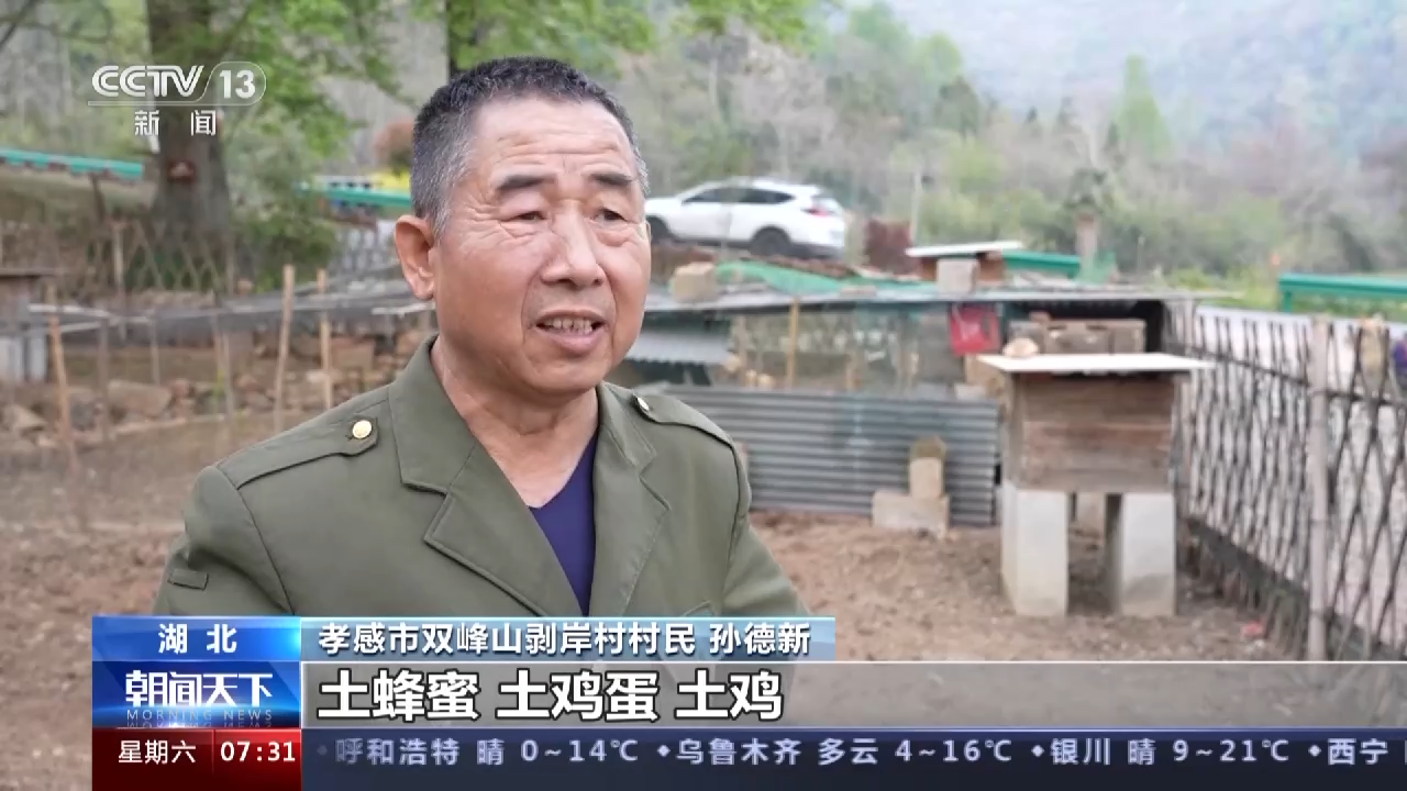 孝感市双峰山剥岸村村民 孙德新:土蜂蜜、土鸡蛋、土鸡、土猪肉都俏得很(卖得好),好的时候一年能赚个大几万块钱。