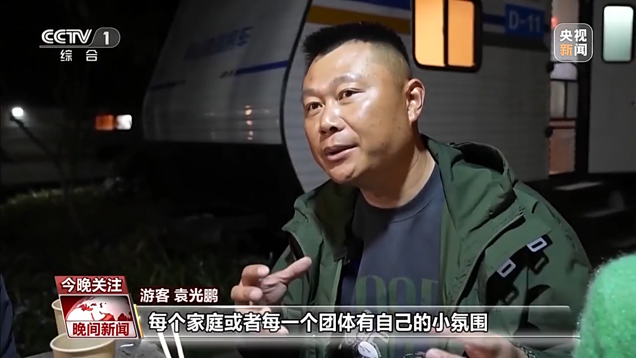 游客 袁光鹏:第一次住这个房车,感觉有个新奇感。每个家庭或者每一个团体有自己的小氛围,自己聊聊天很好的。