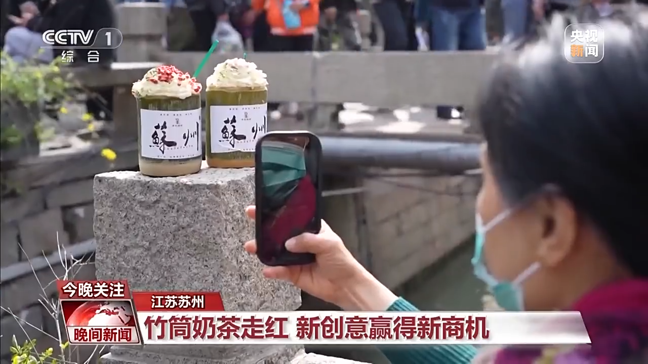 在春日的旅程中,还有这样一款奶茶成为人们的新宠。在江苏苏州的平江路上,不少人都手捧竹筒奶茶。翠绿的竹筒,搭配绵密的奶油雪顶,和花果冻干的装饰,再贴上“苏州”字样的城市标签,这样的组合新潮抢眼,一杯的售价达到30元左右。
