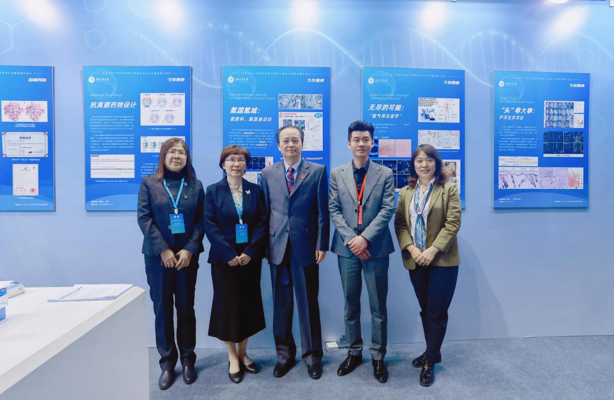 在北工大环境与生命学部教授马雪梅团队“氢国氢城”项目展台前,就已经聚集了不少观众。团队成员赵鹏翔介绍,他们原创性地发现氢气可以促进伤口愈合,激活多种细胞活性,帮助细胞“返老还童”。“大家面前的‘氢敷料’面膜、含氢饮用水都是我们的科研成果产品,已经获得了专利授权。”