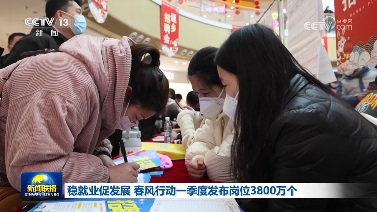 央视网消息(新闻联播):一季度,人社部等11个部门联合开展了春风行动暨就业援助月活动,其间,累计举办各类招聘活动5.8万场,发布岗位3800万个。