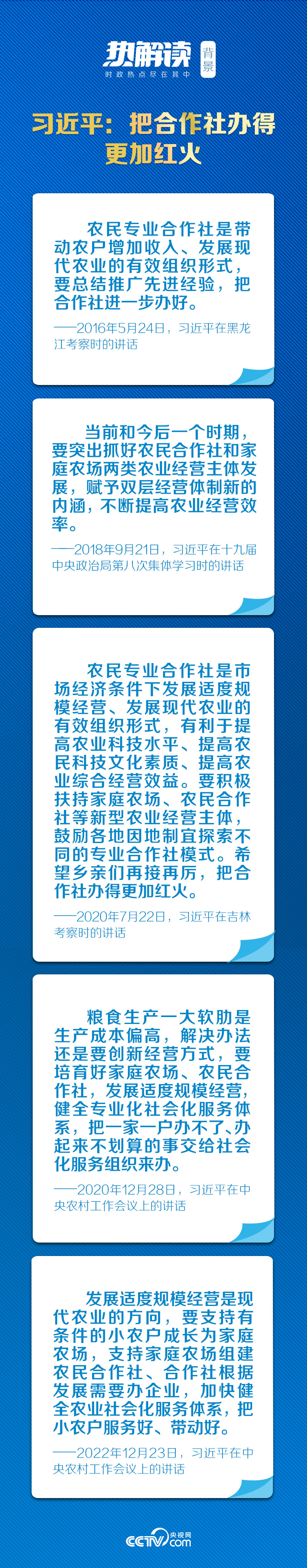 合作社是市场经济条件下发展适度规模经营和现代农业的有效组织形式。党的十八大以来,总书记不止一次走进合作社,关切农业、农村发展,思考中国特色的农业现代化之路。