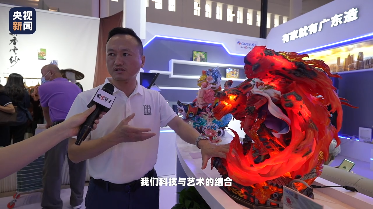 在家居展区,“广东制造”的魅力吸引了不少目光,其中的大型艺术品摆件格外吸睛,大家纷纷驻足拍照。据了解,动漫雕像作为首次在消博会亮相的新品类,除了具有工匠精神的手工制作工序外,还将科技与艺术结合,带来丰富的氛围灯效。极具性价比的新品类“迷你雕像”,更是给喜爱动漫的年轻人圈层提供更多消费选择和体验。