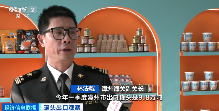 漳州海关副关长 林法戴:今年一季度漳州市出口罐头是9.8万吨,主要是肉类、水果类、鱼类等三大类,出口到全世界大概160多个国家和地区。