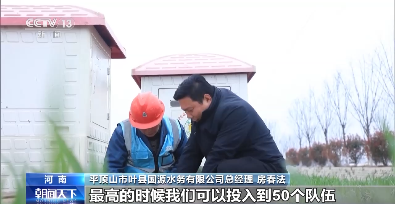 河南平顶山市叶县国源水务有限公司总经理 房春法:最高的时候我们可以投入到50个队伍。小修不过夜,大修不超过24小时,能够确保及时地灌溉。